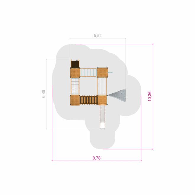Aztek Spielanlage mit Kletterwand und Rutsche - Draufsicht