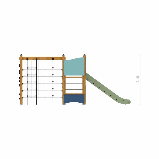 Klettergerüst mit Kletterwand und Rutsche - Frontansicht