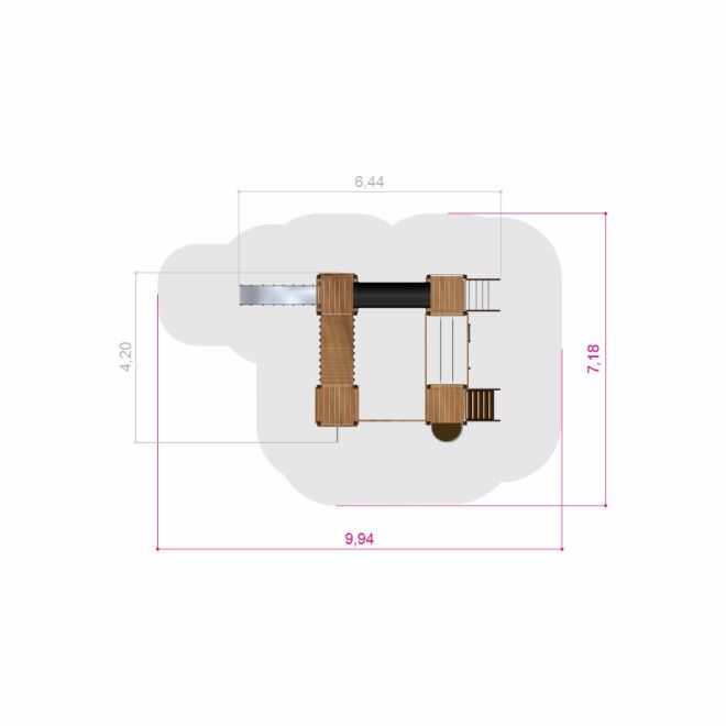 Tarzan Klettergerüst mit Tunnel - Draufsicht