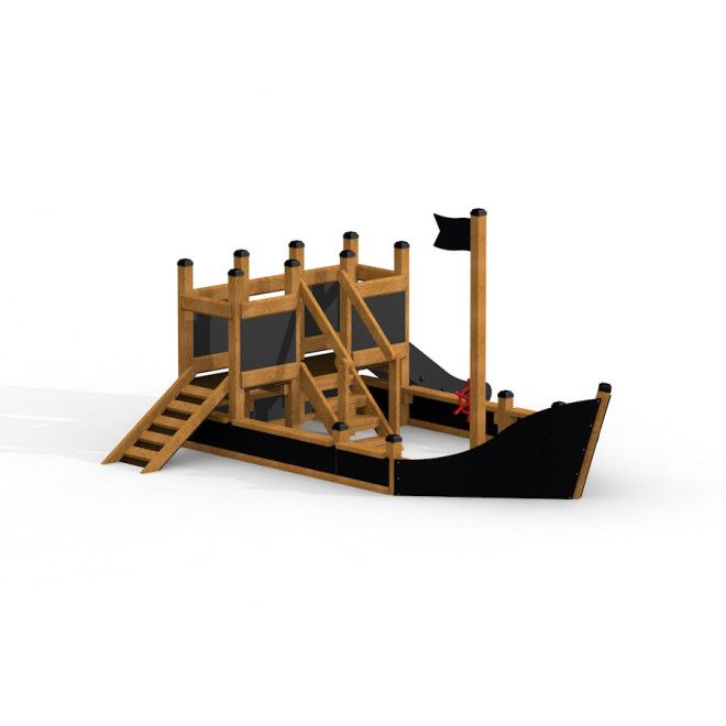 Kleines Schiff Sandkasten mit Rutsche - Isometrische Ansicht