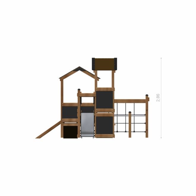 Bastei Spielhaus mit Kletternetz und Rutsche - Frontansicht