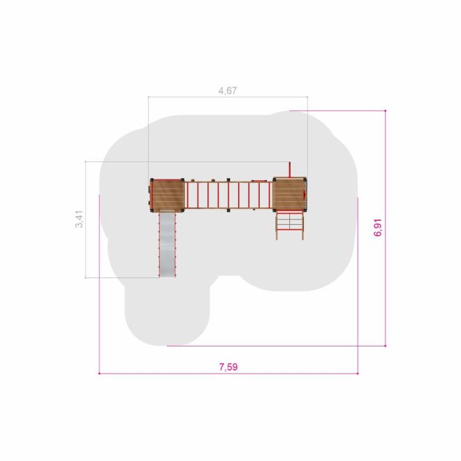 Zebra Klettergerüst mit Rutsche - Draufsicht