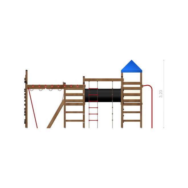 Düsseldorf Spielanlage mit Spielturm, Tunnel und Kletterwand - Frontansicht