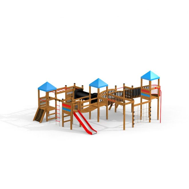 Drei Spieltürme Festung mit Rutsche - Isometrische Ansicht