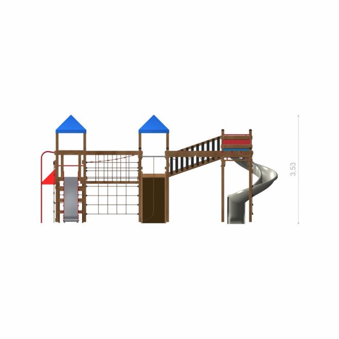 Weltraumstation mit Spieltürme und Spiralrutsche - Frontansicht