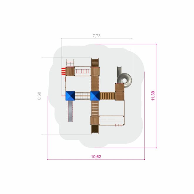Weltraumstation mit Spieltürme und Spiralrutsche - Draufsicht