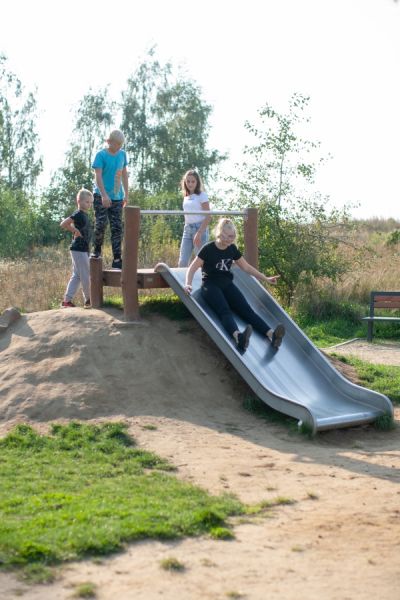 Die Hangrutsche breit STS150 aus der Nature-Linie ist ein unverzichtbares Element moderner Spielplatzgeräte. Durch ihr großzügiges Design und die breite Rutschfläche bietet sie Kindern ab drei Jahren ein außergewöhnliches Erlebnis. Als einladender Anziehungspunkt auf Spielplätzen fügt sie sich harmonisch in jede Umgebung ein und lädt zur aktiven Bewegung ein, ohne Kompromisse bei Sicherheit oder Komfort einzugehen.