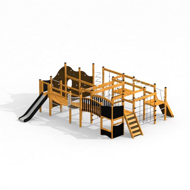 Diese Spielanlage ist nicht nur ein Highlight auf öffentlichen Spielplätzen, sondern auch in Parks und Freizeitanlagen einsetzbar. Ihre Vielseitigkeit ermöglicht es, abwechslungsreiche Spielarenen zu gestalten und den Aufenthalt sowohl für Kinder als auch für Erwachsene angenehmer zu machen. Die Funktionalität und das ansprechende Design sorgen dafür, dass die Anlage jederzeit zum Spielen einlädt und eine wertvolle Ergänzung jeder FreizeitiAusrüstung darstellt.