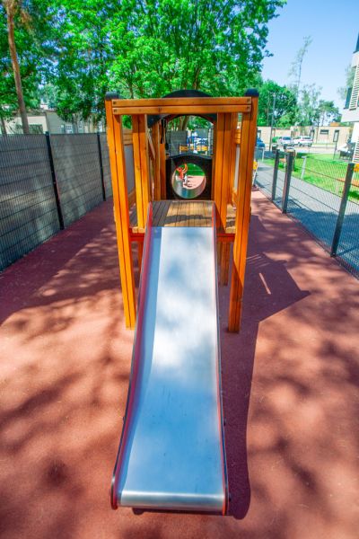 Ein zentrales Merkmal des Lokomotive Spielhauses ist seine Sicherheit. Die Konstruktion erfüllt die strengen Anforderungen der Norm EN 1176-1:2017, was für zusätzliche Sicherheit und Zuverlässigkeit sorgt. Die robuste Bauweise und die sorgfältig gestalteten Spielkomponenten minimieren das Risiko mechanischer Schäden und sorgen dafür, dass das Spielgerät den hohen Anforderungen des Alltags standhält und den Kindern gleichzeitig eine sichere Spiellandschaft bietet.