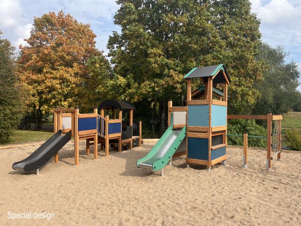 Ob in städtischen Parks, auf Freizeitanlagen oder in der Nähe von Sporteinrichtungen – das Lokomotive Spielhaus mit Kletterturm und Rutsche ist vielseitig einsetzbar. Es ergänzt jede Spielumgebung durch seine ansprechende Ästhetik und seine funktionale Gestaltung, die es den Betreibern ermöglicht, den Raum optimal zu nutzen und Kindern eine bereichernde Spielumgebung zu bieten. Die geräumige Struktur und die gut durchdachten Spielfunktionen sind ideal, um in jeder Umgebung Interesse und Freude zu wecken.