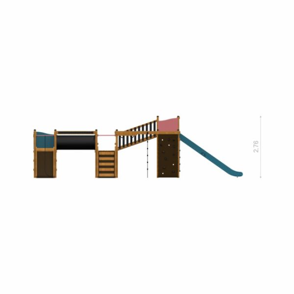 Unsere Holzkonstruktion kommt aus der Produktlinie Classic Nature und ist eine echte Rarität. Wie es sich für eine echte Basis gehört, besitzt „Piraten Basis Natur“ viele Seitengänge, Balkons und Quasi-Korridore. Des Weiteren finden die Kleinen hier vielfältige Spielattraktionen: Holzbrücke, Hängebrücke, Kletterwand und Kletternetz, schräge Kletterwand mit Seil, Holzleiter, horizontale und senkrechte Leiter, Schwebebalken, Tunnel und die unerlässliche Rutsche, dank der man schnell aus dem Abenteuerlabyrinth flüchten kann.