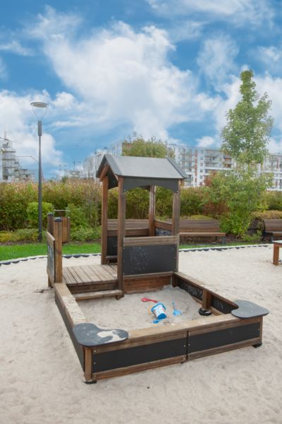 Villa Spielhaus mit Sandkasten, Sandkästen, Spielplatzgeräte | LARS LAJ® (19724)