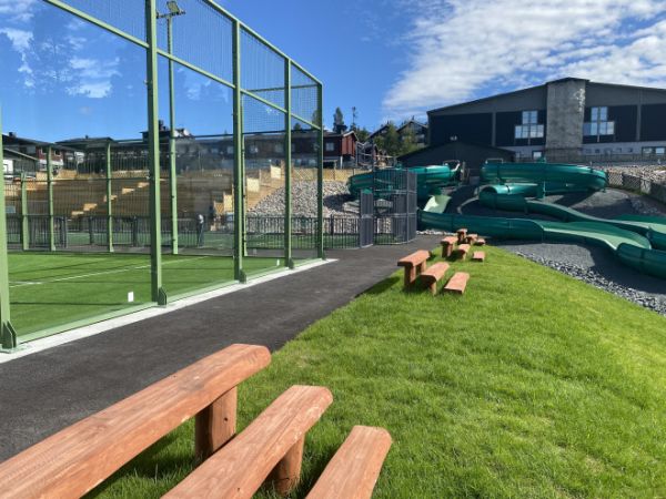 Dank ihres durchdachten Designs passt sich die Holztribüne nahtlos in verschiedenste Settings ein. Ob in urbanen Parks, auf Sportplätzen oder in Erholungsgebieten – sie bietet überall einen angenehmen Ort zum Verweilen. Die komfortable Sitzhöhe ermöglicht es Nutzern einfach Platz zu nehmen und die Umgebung zu genießen, während die breite Bankfläche genügend Raum für mehrere Personen bietet. Ihre Vielseitigkeit und Anpassungsfähigkeit machen sie zu einer idealen Wahl für jede Anlage, die auf Komfort und Erholung ausgerichtet ist.